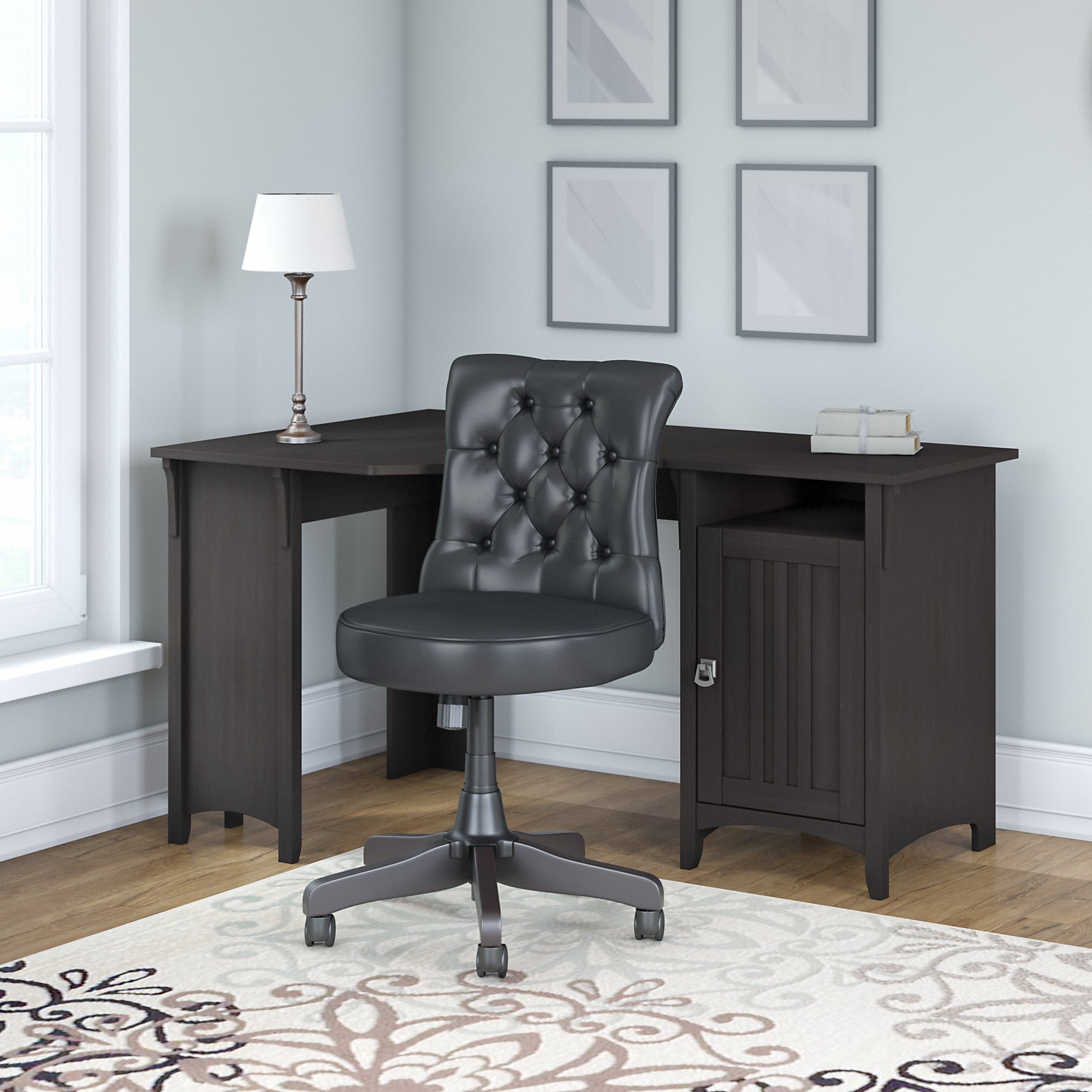 Bush Furniture Salinas Farmhouse 55w Corner Desk Set With Mid Back Tufted Leather Office Chair In Vintage Black Ships In 2 Boxes Walmart Com